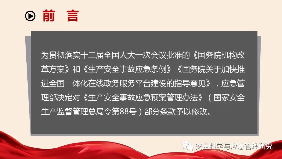 中華人民共和國應(yīng)急管理部令第2號(hào)發(fā)布,內(nèi)容是關(guān)于修改原安全監(jiān)管總局88號(hào)令《生產(chǎn)安全事故應(yīng)急預(yù)案管理辦法》,一共涉及19條修改,同時(shí)將修改后的文本正式發(fā)布!