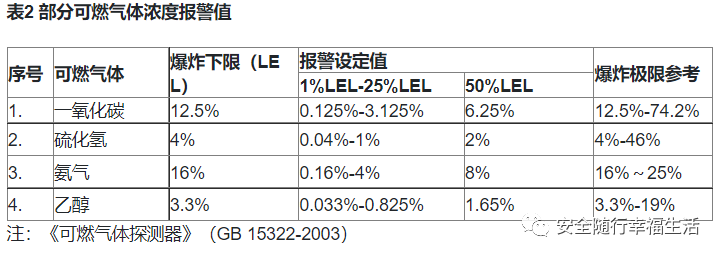 常見可燃、毒性氣體量程及報警值設(shè)定