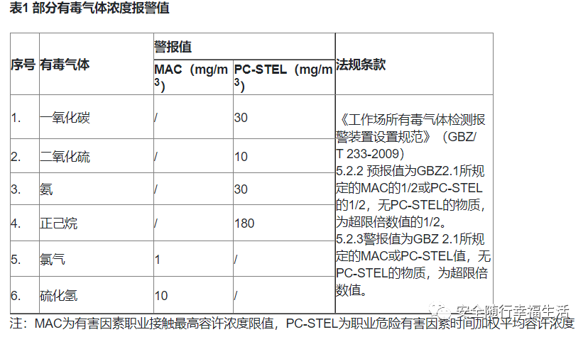 常見毒性氣體量程及報警值設(shè)定