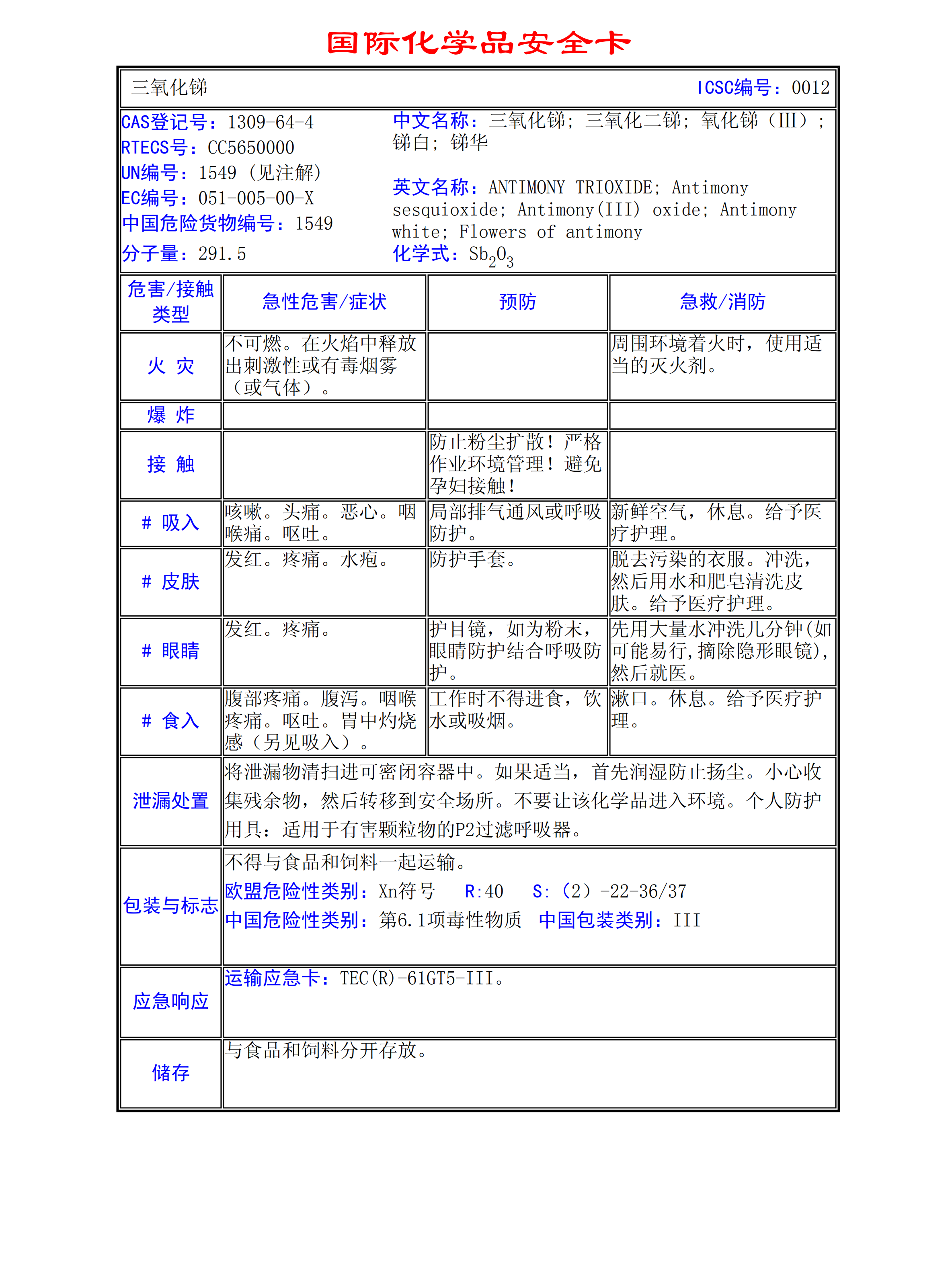 三氧化弟 MSDS