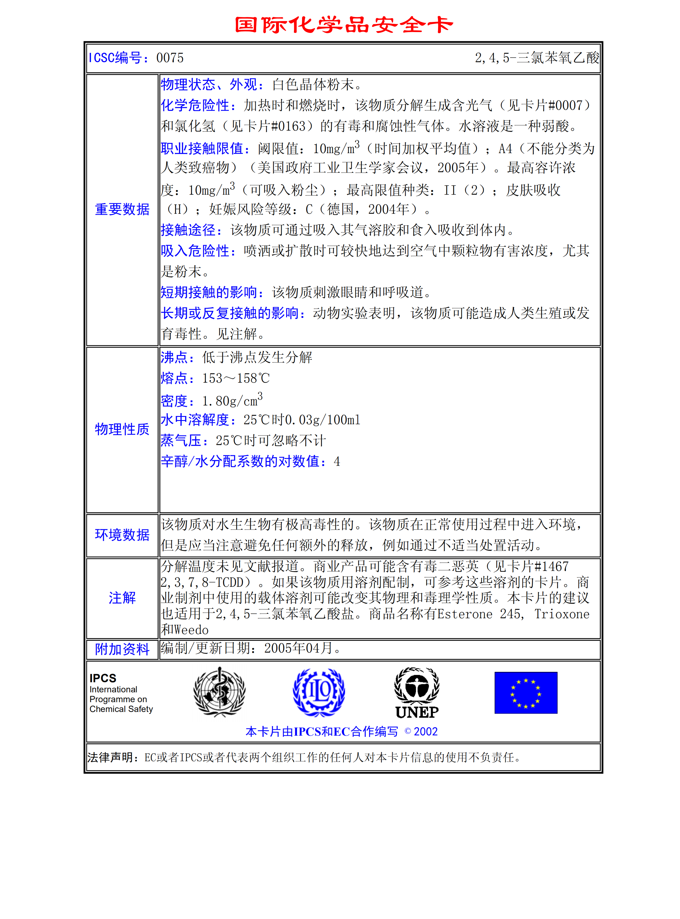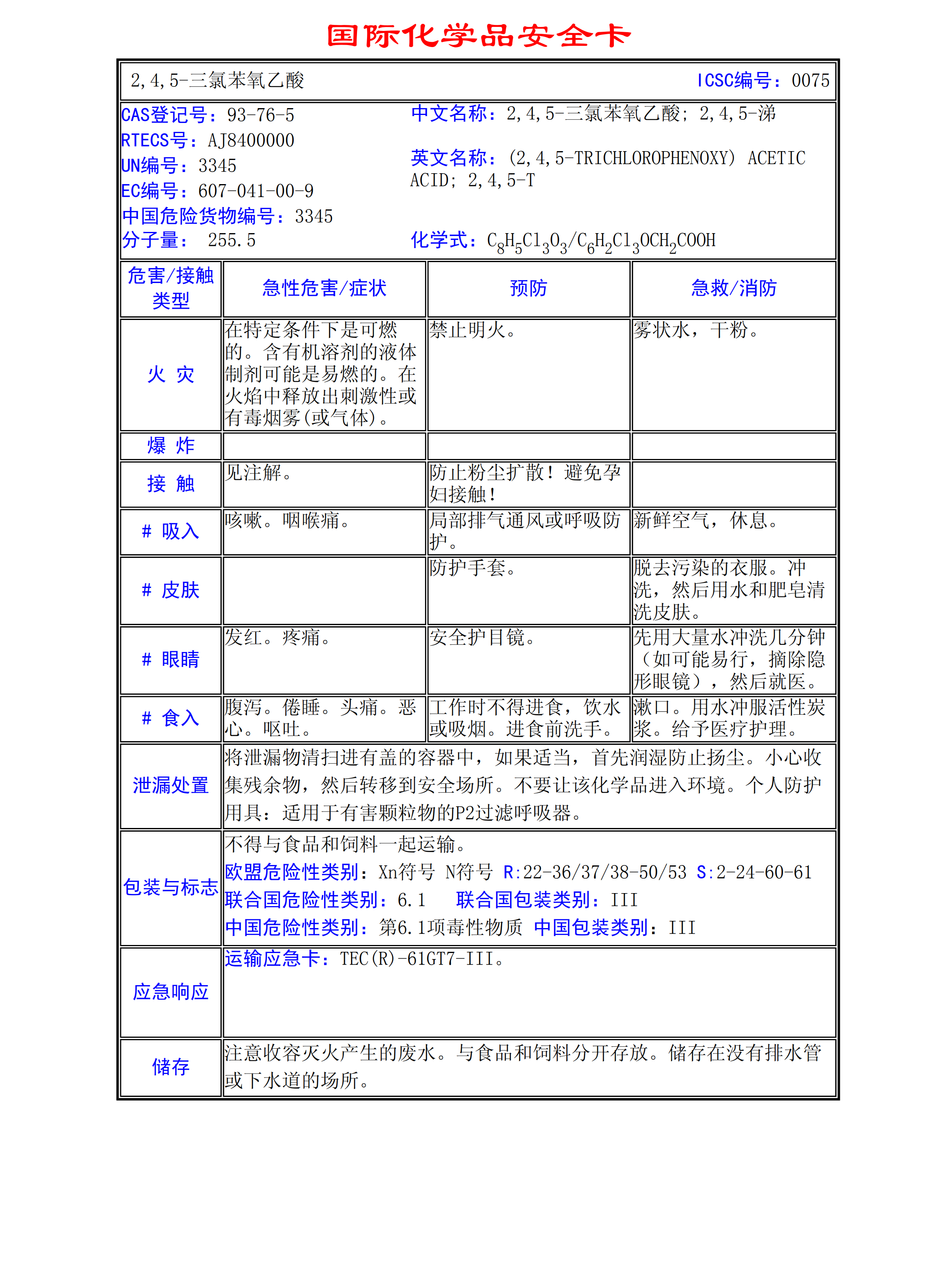 2,4,5-三氯苯氧乙酸MSDS