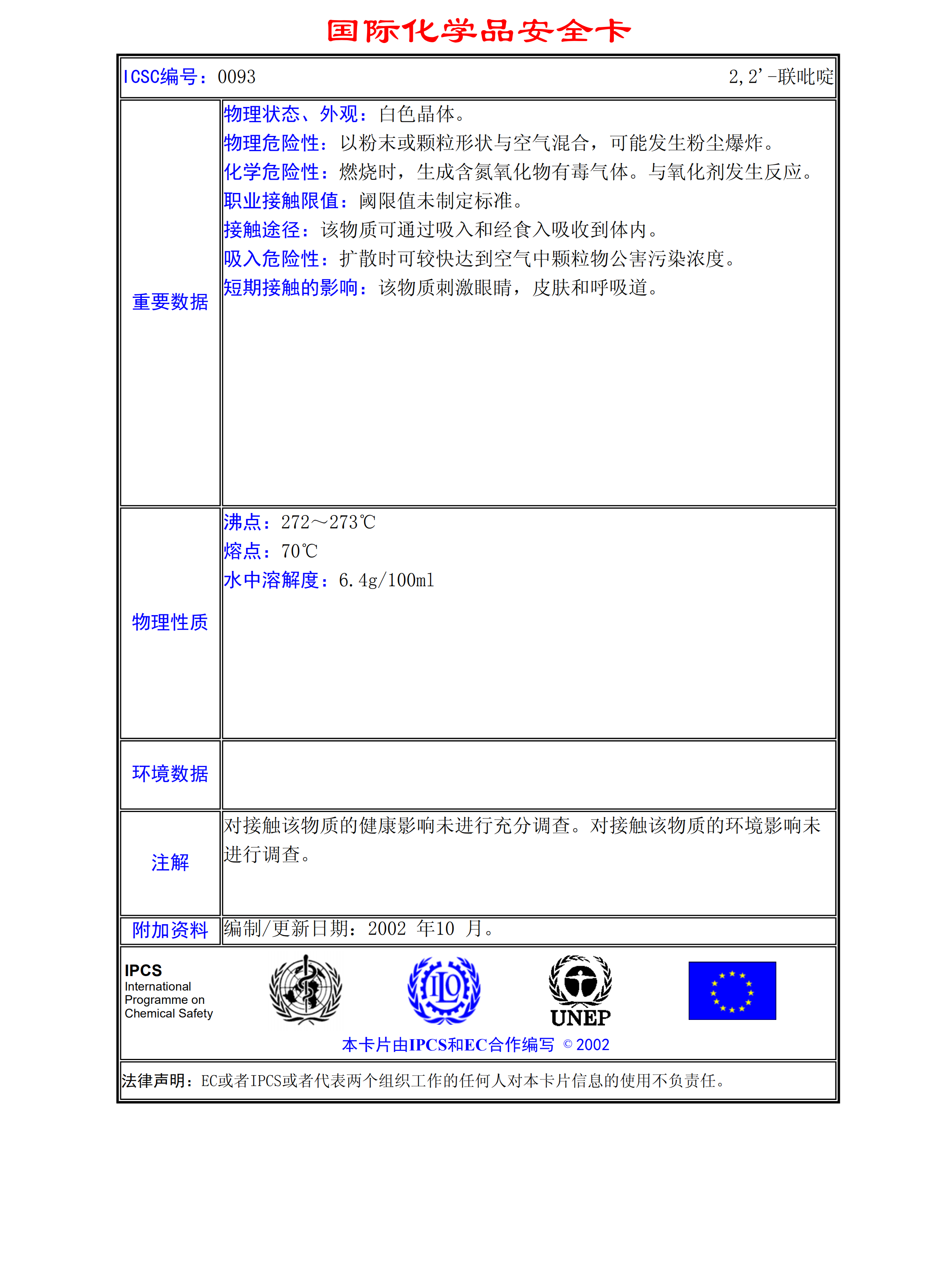 2,2‘-聯(lián)吡啶MSDS