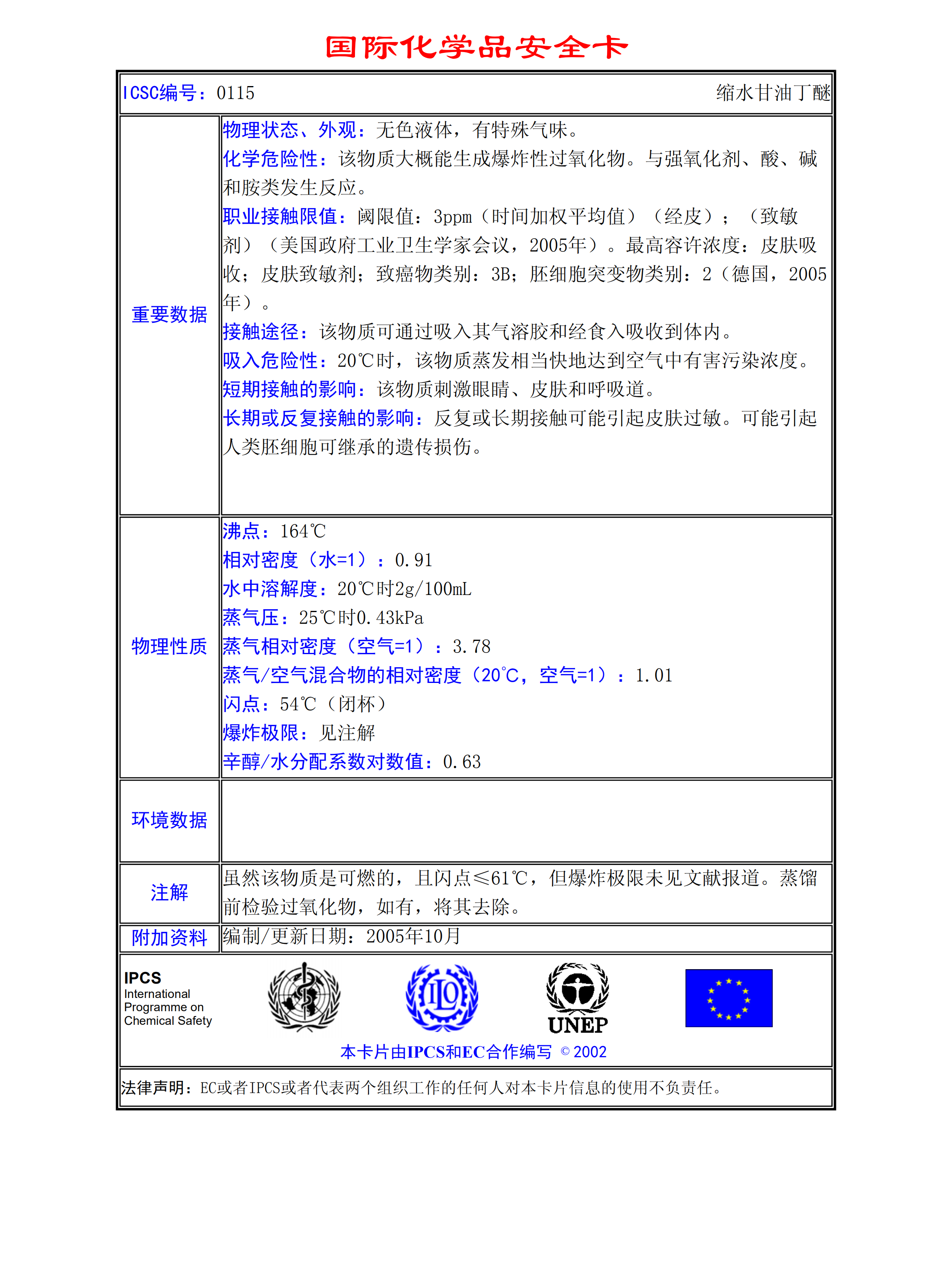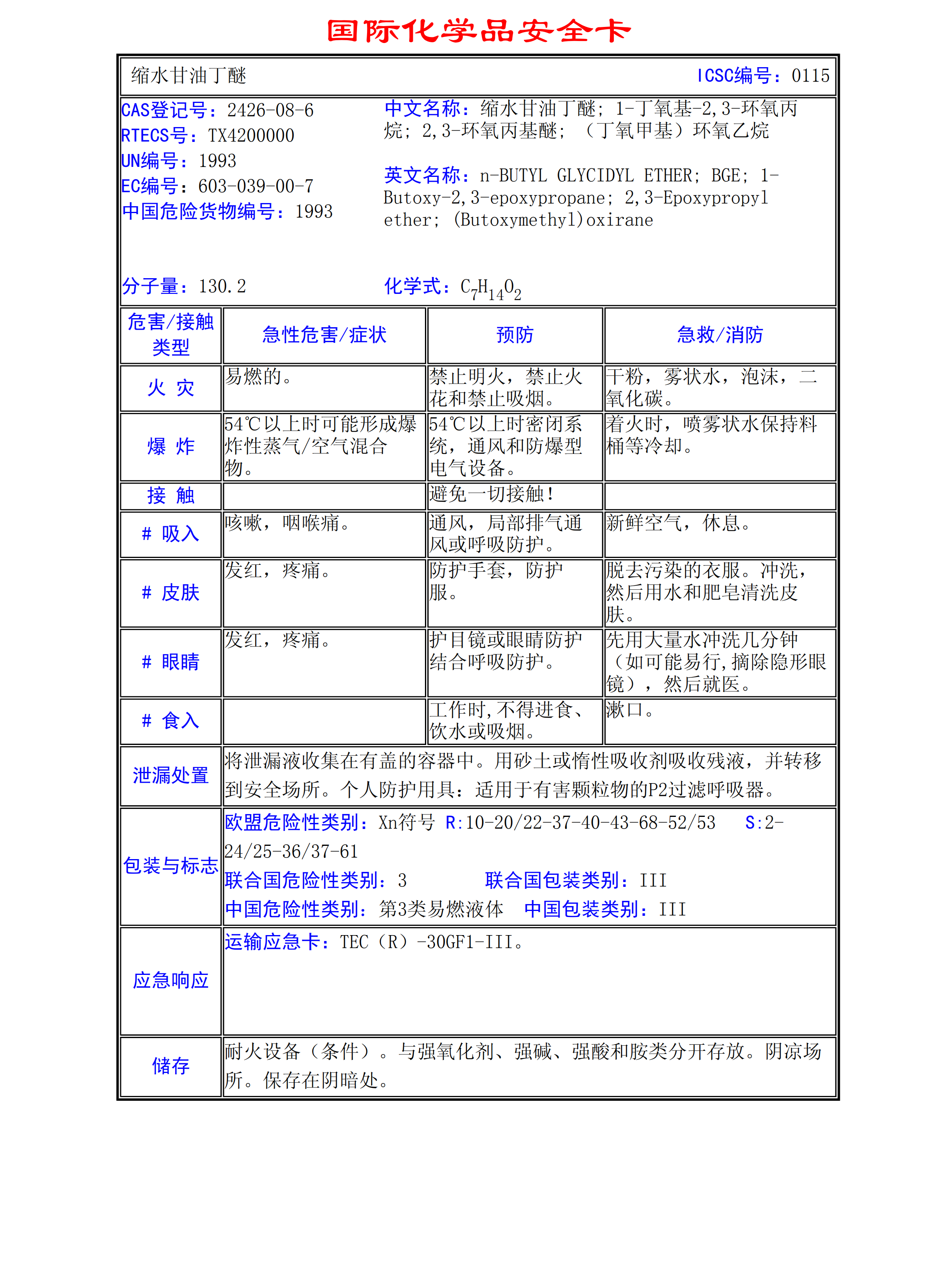 縮水甘油丁醚MSDS