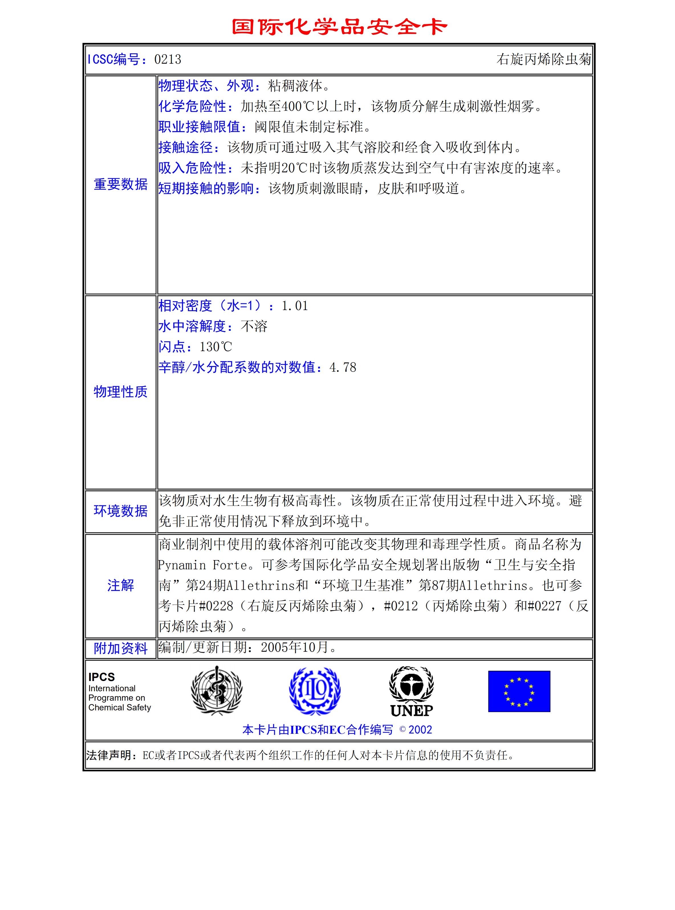 丙烯除蟲菊MSDS