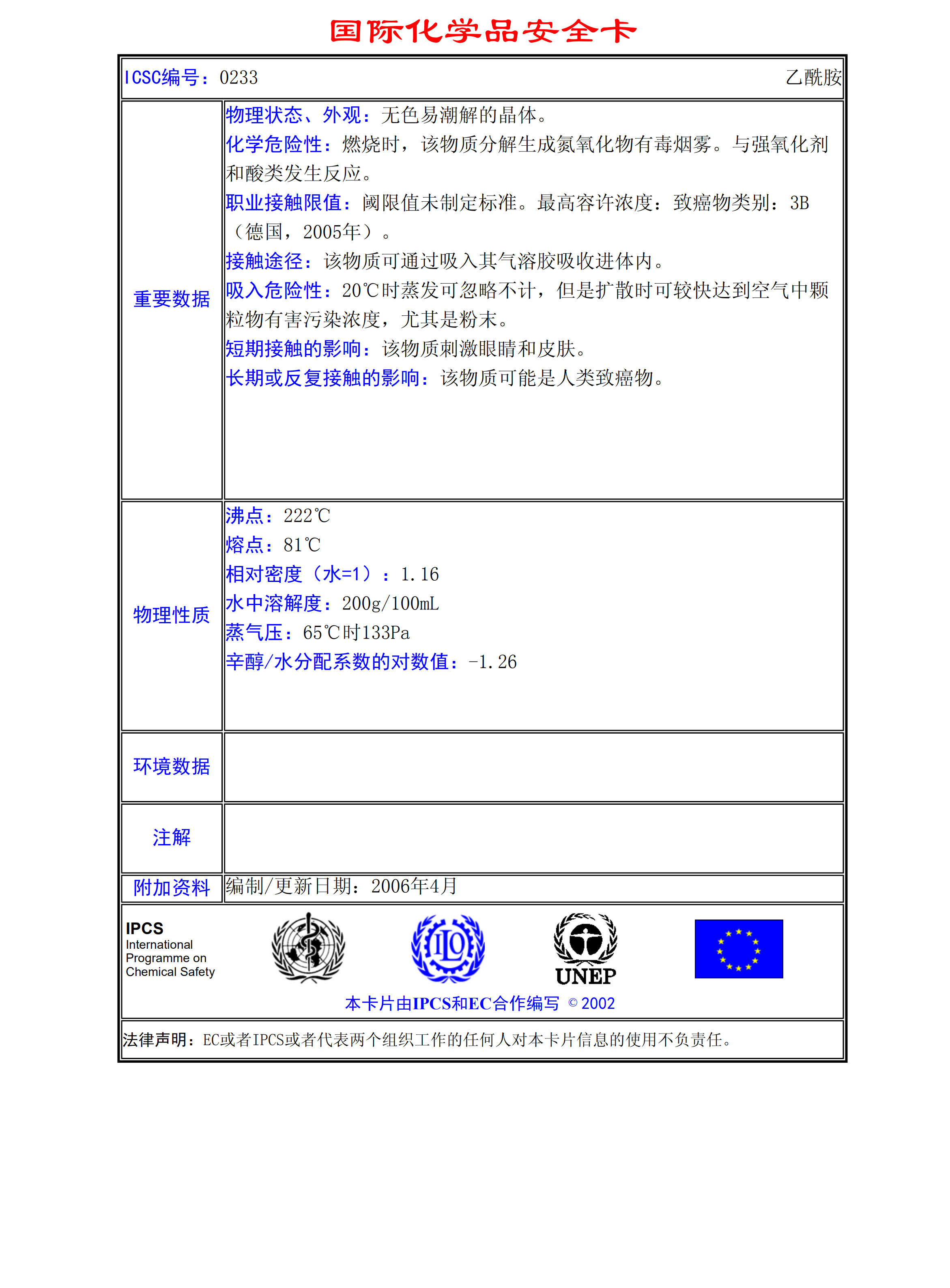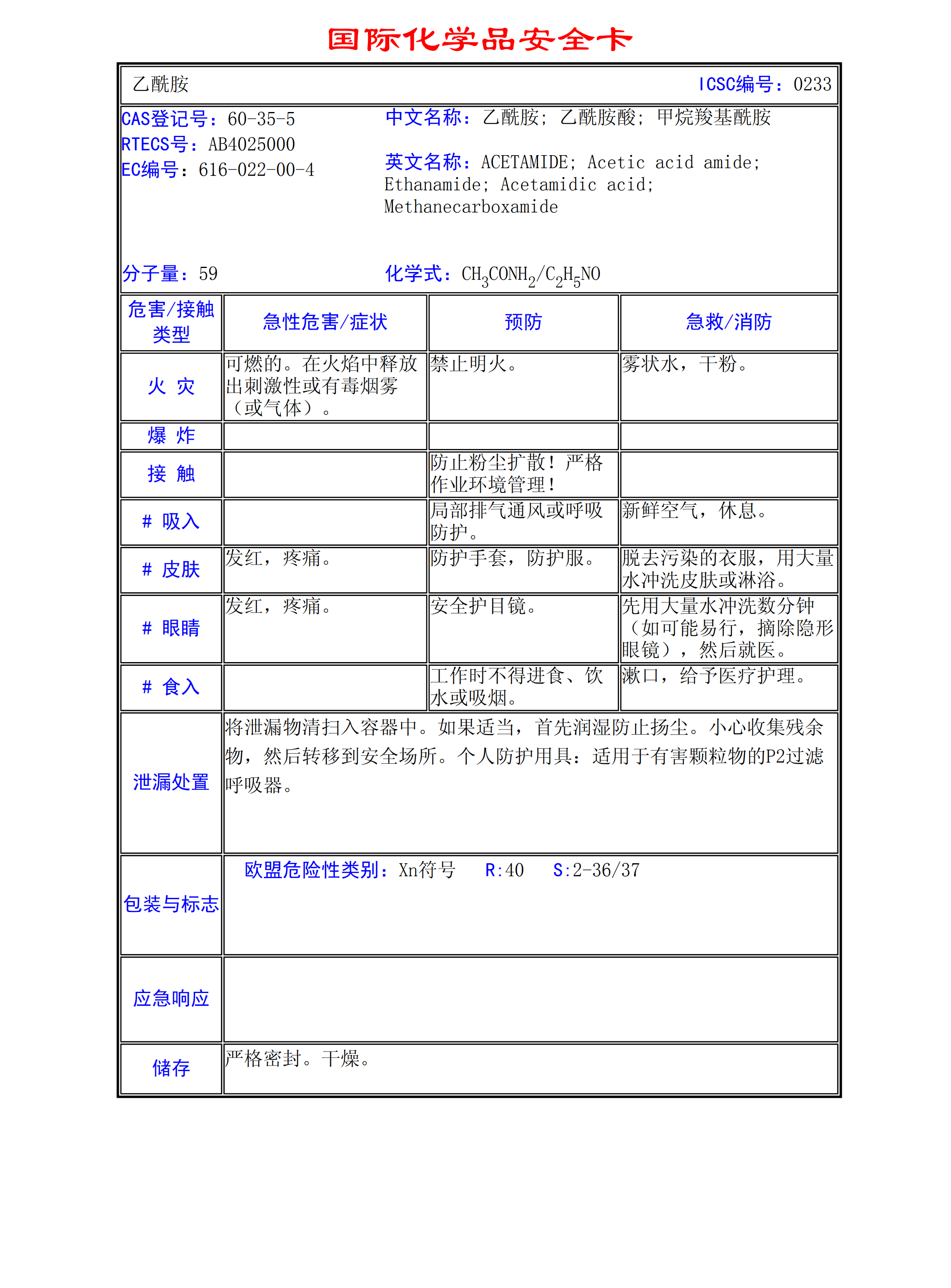 乙酰胺MSDS