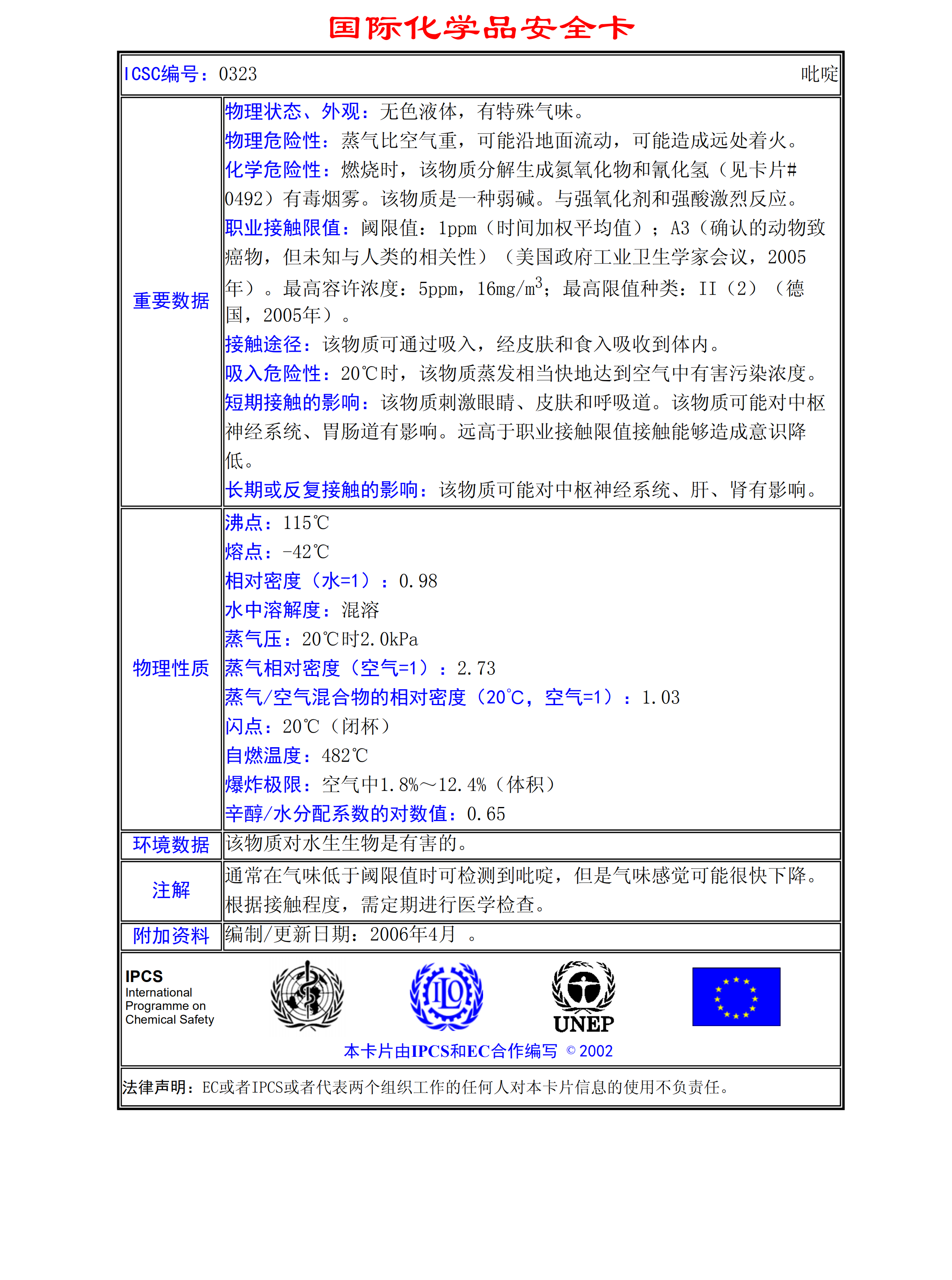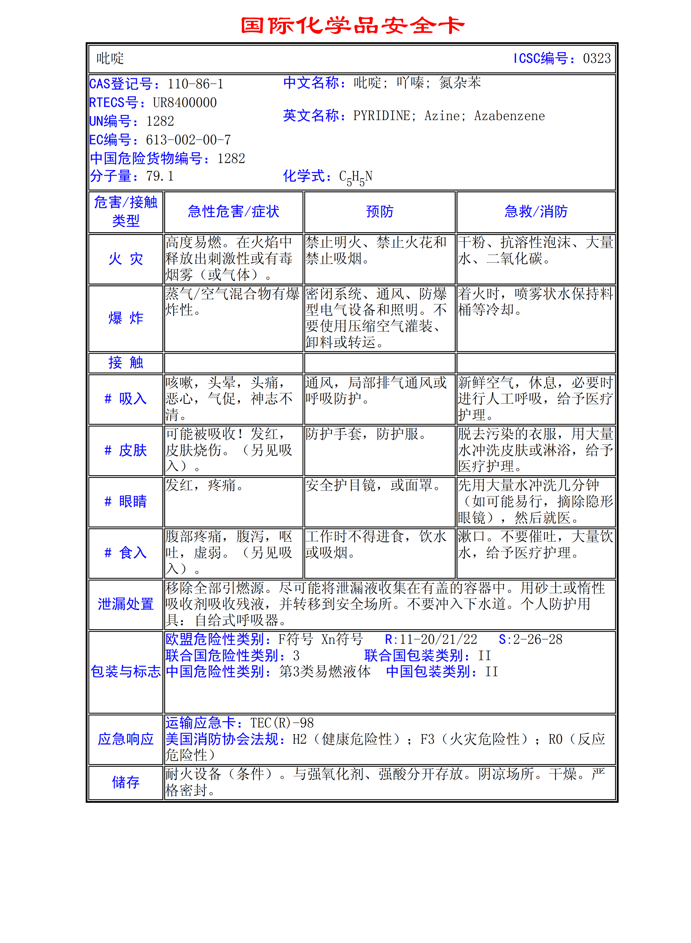 吡啶MSDS