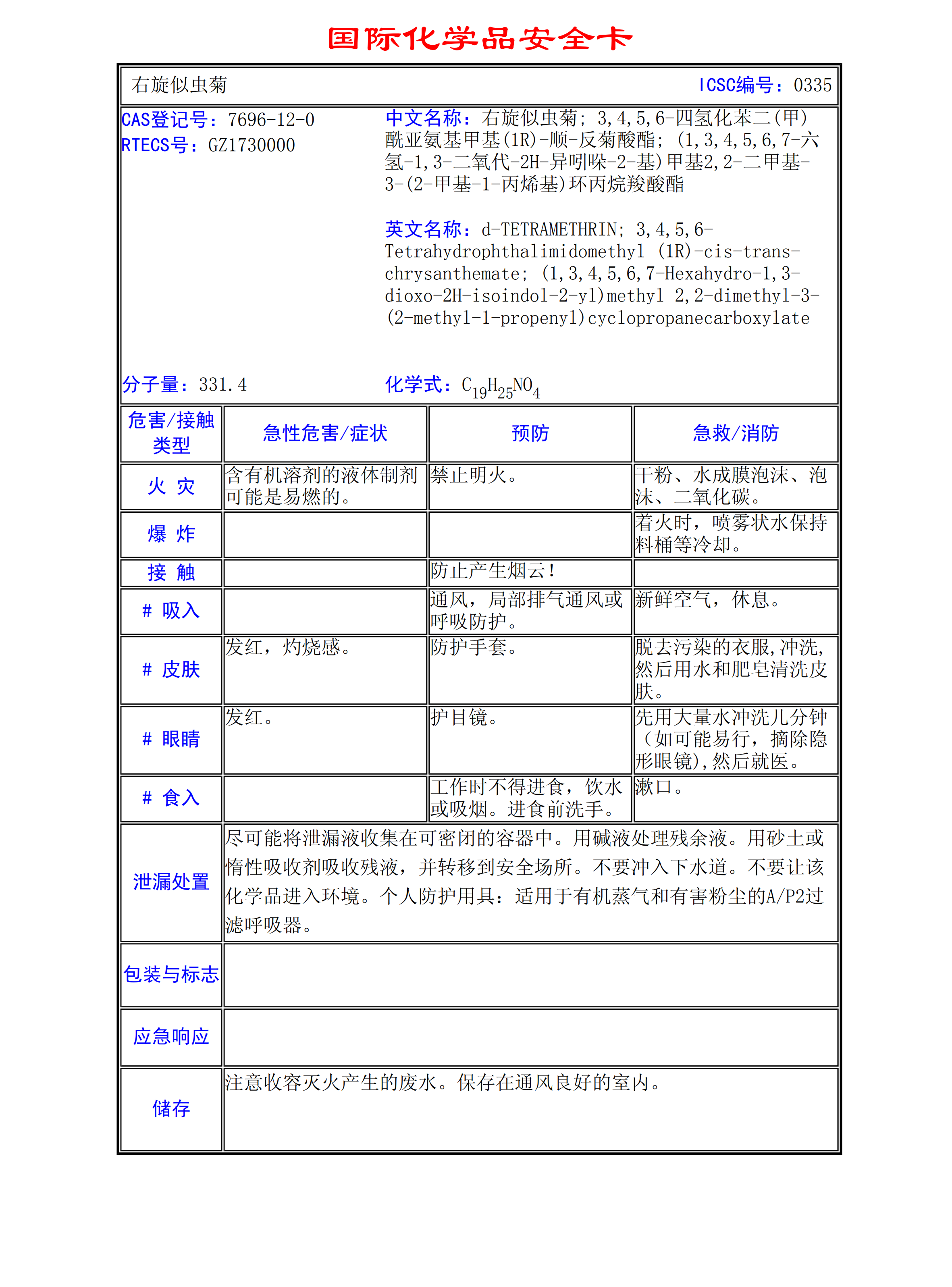 右旋似蟲菊MSDS