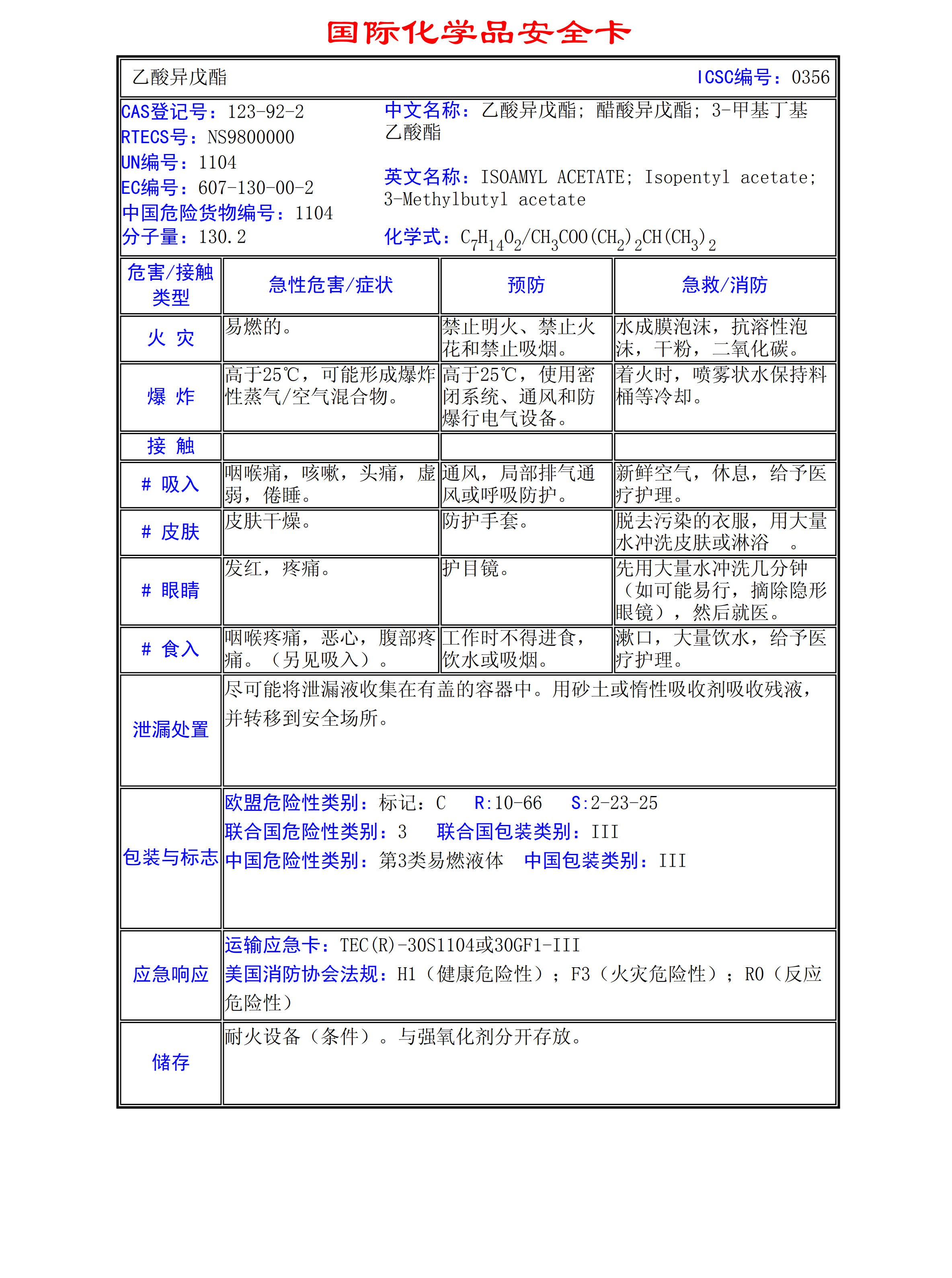 乙酸異戊酯MSDS