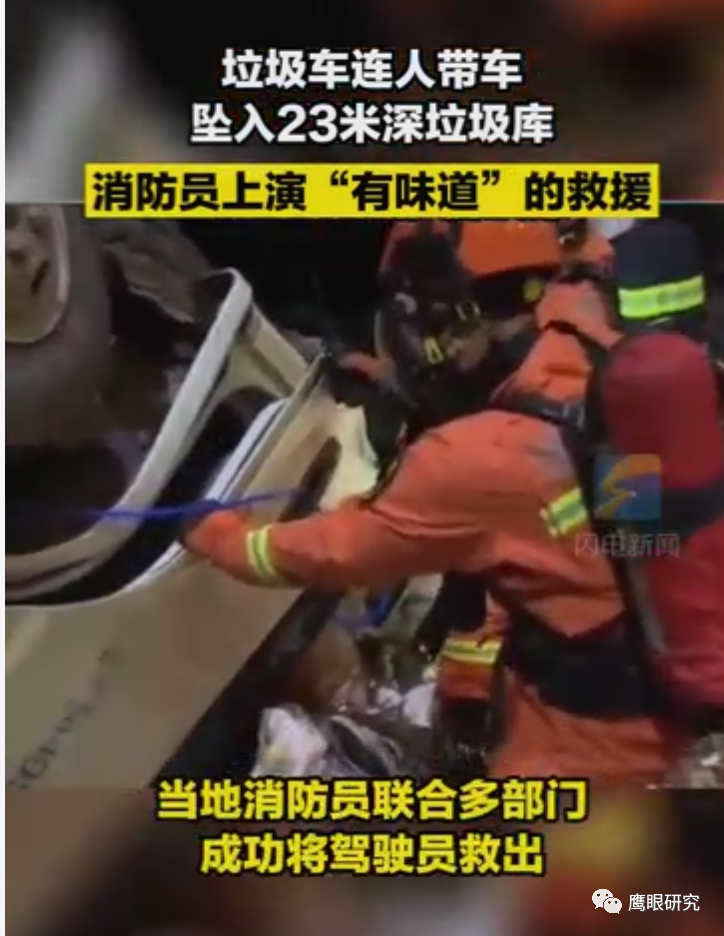 湖南某垃圾電廠一垃圾車連人帶車墜入23米深垃圾庫