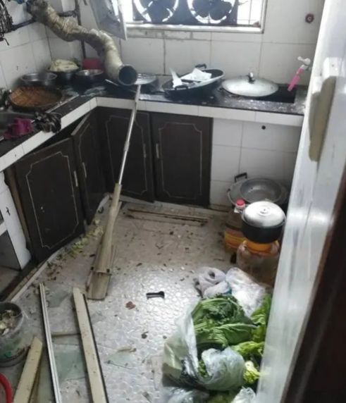 趕緊跑進(jìn)廚房查看,發(fā)現(xiàn)灶上的高壓鍋發(fā)生爆炸。廚房里的灶臺、櫥柜、排煙管皆被震碎,現(xiàn)場一片狼藉,