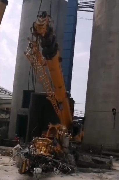 吊車在某電廠作業(yè)時(shí)被落物砸爛