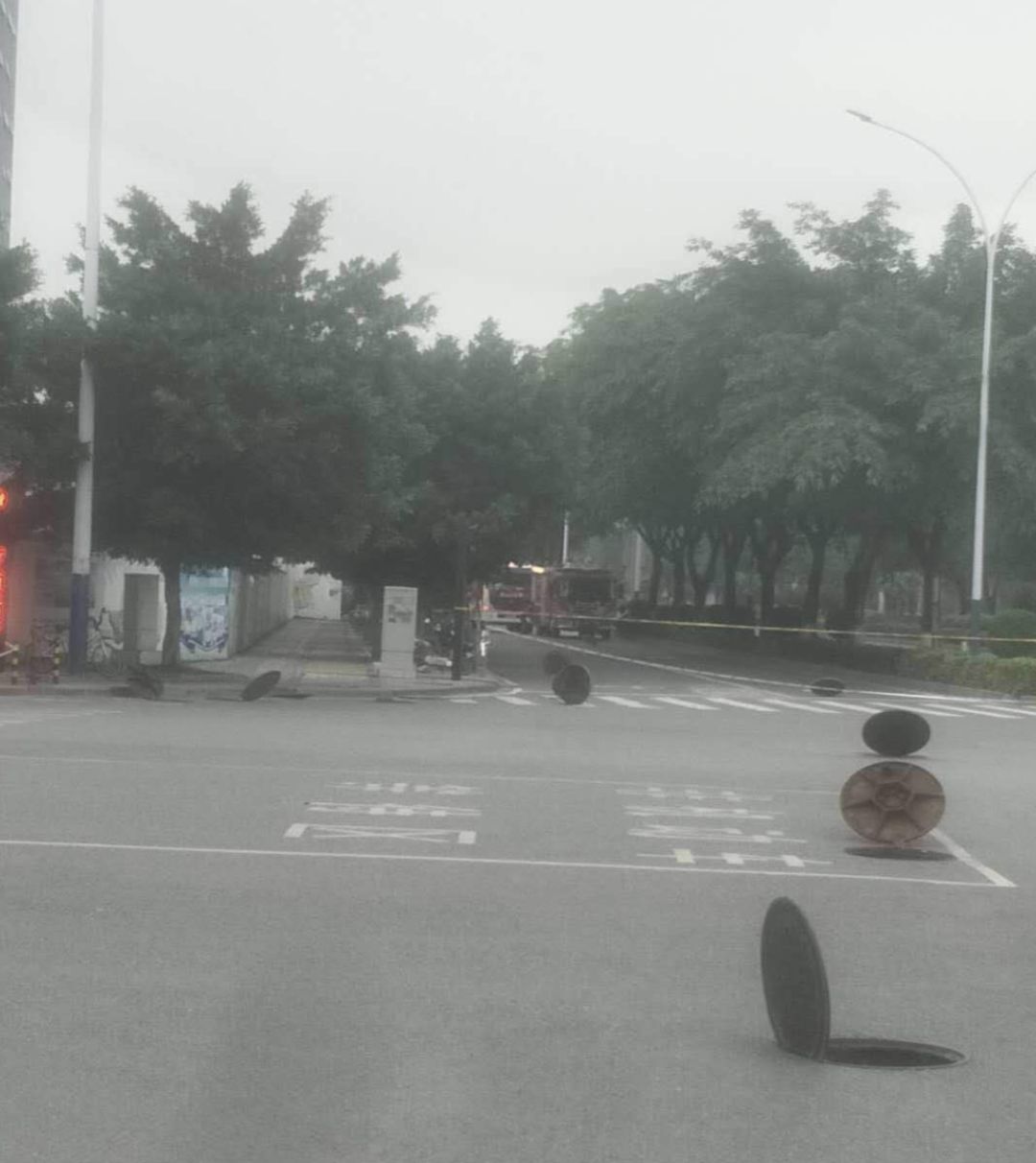 所有井蓋都立了起來(lái),網(wǎng)友推測(cè)可能是在“通氣”